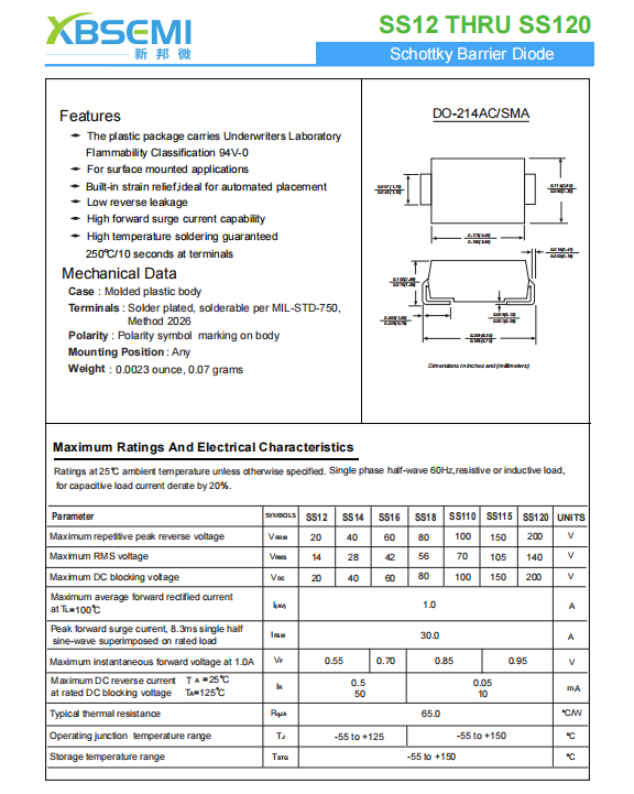 肖特基二極管SS16A規格書如下: